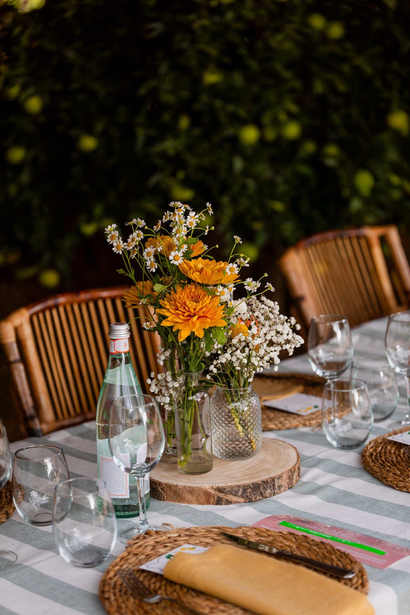 El día amaneció nublado, con una luz suave que envolvía cada momento con un aire íntimo y sereno. Pero, a medida que avanzaban las horas, el cielo se fue abriendo y el sol terminó regalándonos una mañana preciosa, perfecta para celebrar y disfrutar al aire libre.