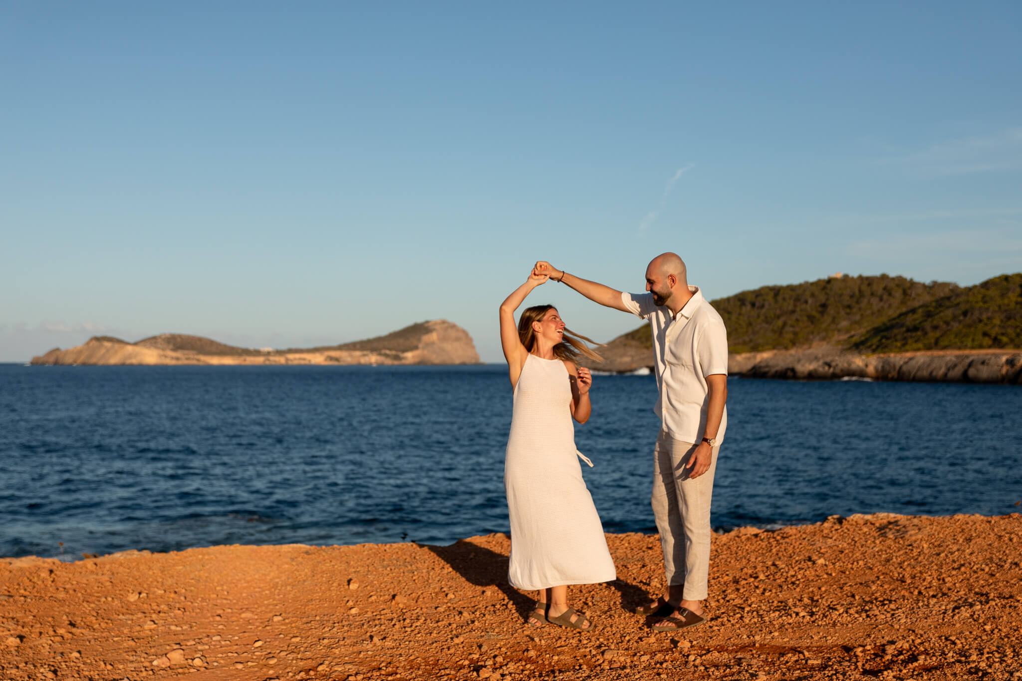 No hubo poses rígidas ni guiones marcados: solo la esencia de dos personas que se quieren y disfrutan del momento. Ibiza, con su luz y su carácter salvaje, hizo el resto.